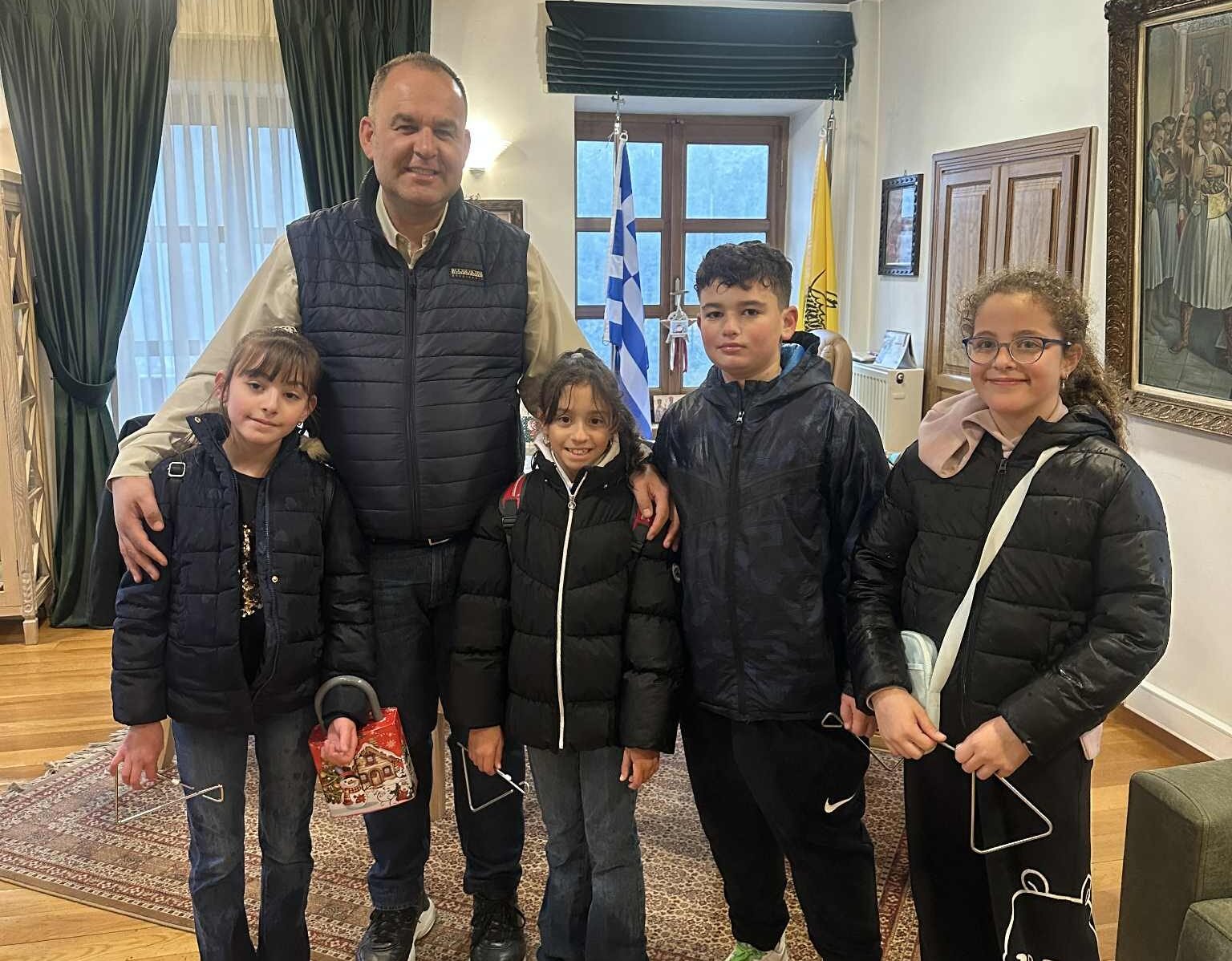 Παραμονή Χριστουγέννων, και η παράδοση αντάμωσε με την ελπίδα. Μαθητές από σχολεία της περιοχής, κρατώντας τα παραδοσιακά τρίγωνα και με τα πρόσωπα φωτισμένα από τη χαρά της ημέρας, έψαλλαν τα κάλαντα στον Δήμαρχο Γορτυνίας, Ευστάθιο Κούλη, και στο προσωπικό του Δήμου.