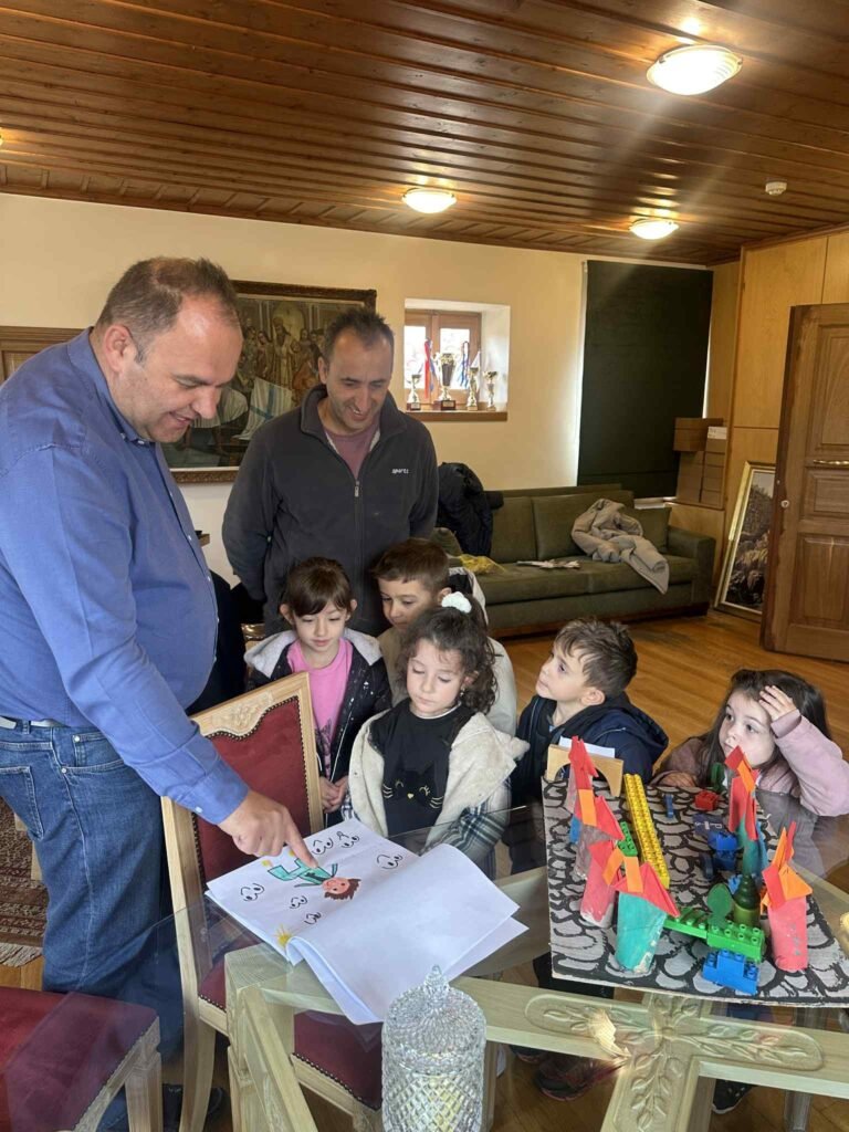 Οι πέντε μικροί μαθητές, συνοδευόμενοι από τις νηπιαγωγούς Στέλλα Υψηλάντη και Μαριλένα Μίχα, παρουσίασαν στον Δήμαρχο και στους Αντιδημάρχους Δημήτρη Καζά και Σταύρο Δημάκο τη μακέτα και τις προτάσεις τους για μια πιο συμπεριληπτική Δημητσάνα, όπου όλοι οι κάτοικοι και επισκέπτες μπορούν να κινούνται και να απολαμβάνουν τον δημόσιο χώρο με ασφάλεια και ισότητα.
