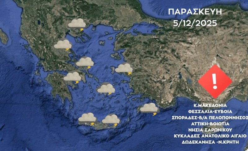 Τα φαινόμενα, όπως αναφέρει θα συνοδεύονται από χαλαζοπτώσεις και θυελλωδείς νοτιάδες, ενώ χιόνια θα πέσουν στα ορεινά.