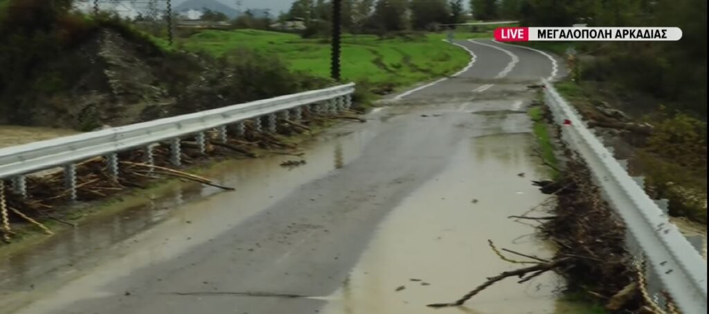 Ο ποταμός είχε φουσκώσει επικίνδυνα και τα νερά παρέσυραν φερτά υλικά πάνω στο δρόμο, ενώ αυτή την ώρα αν και η στάθμη του ποταμού έχει υποχωρήσει, ο κίνδυνος παραμένει, καθώς υπάρχει πρόβλεψη για νέα έντονα φαινόμενα από το μεσημέρι.