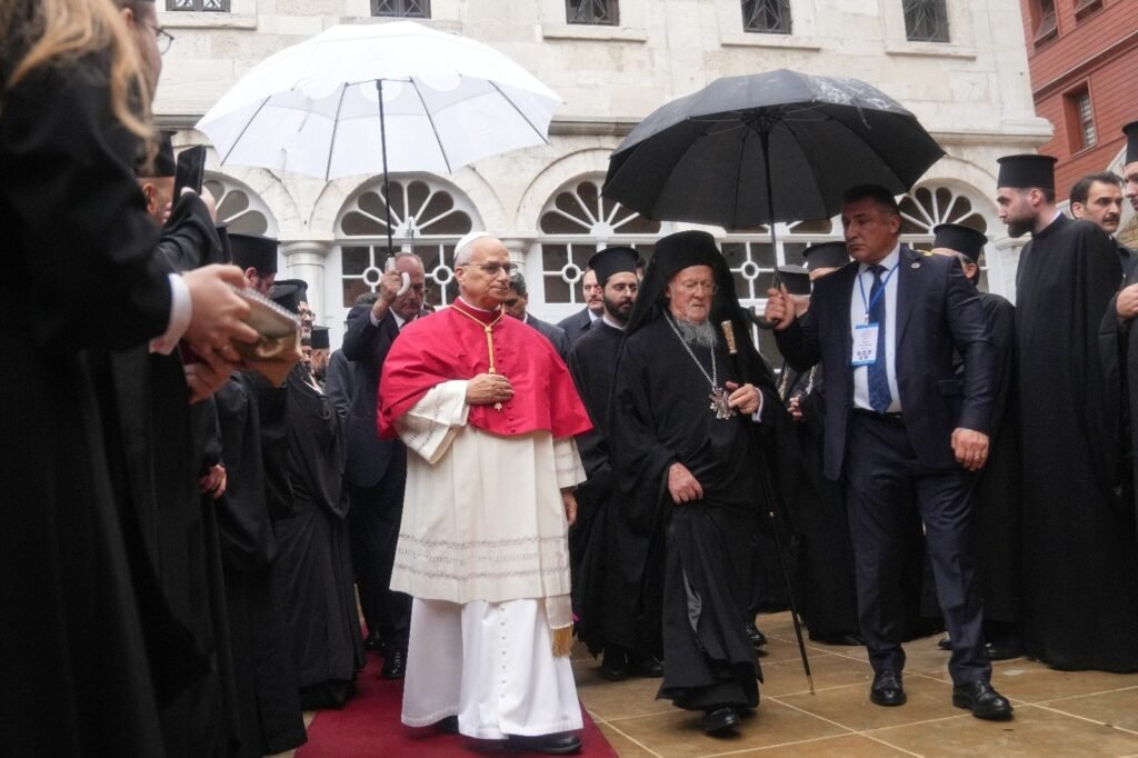 «Σας υποδεχόμαστε με χαρά και αγαλλίαση», είπε ο Πατριάρχης Βαρθολομαίος απευθυνόμενος στον Πάπα Λέοντα και έκανε εκτενή αναφορά στην σύμπνοια που υπήρχε με τον προκάτοχό του, Πάπα Φραγκίσκο. Σημείωσε δε, ότι είναι σημαντικό το γεγονός ότι το πρώτο εκτός Ιταλίας ταξίδι του Πάπα Λέοντος είναι στο μέρος που θεμελιώθηκε η χριστιανική εκκλησία, στη Νίκαια και στο κέντρο της Ορθοδοξίας στο Φανάρι. Το μήνυμα της ενότητας των δύο εκκλησιών, είπε ο Πατριάρχης, το θεωρούμε πιο σημαντικό από ποτέ. Σας καλωσορίζουμε ως αδελφό, ανανεώνουμε τη δέσμευση των εκκλησιών μας να φέρουμε την ειρήνη και τη συμφιλίωση στον κόσμο», είπε ο Πατριάρχης.