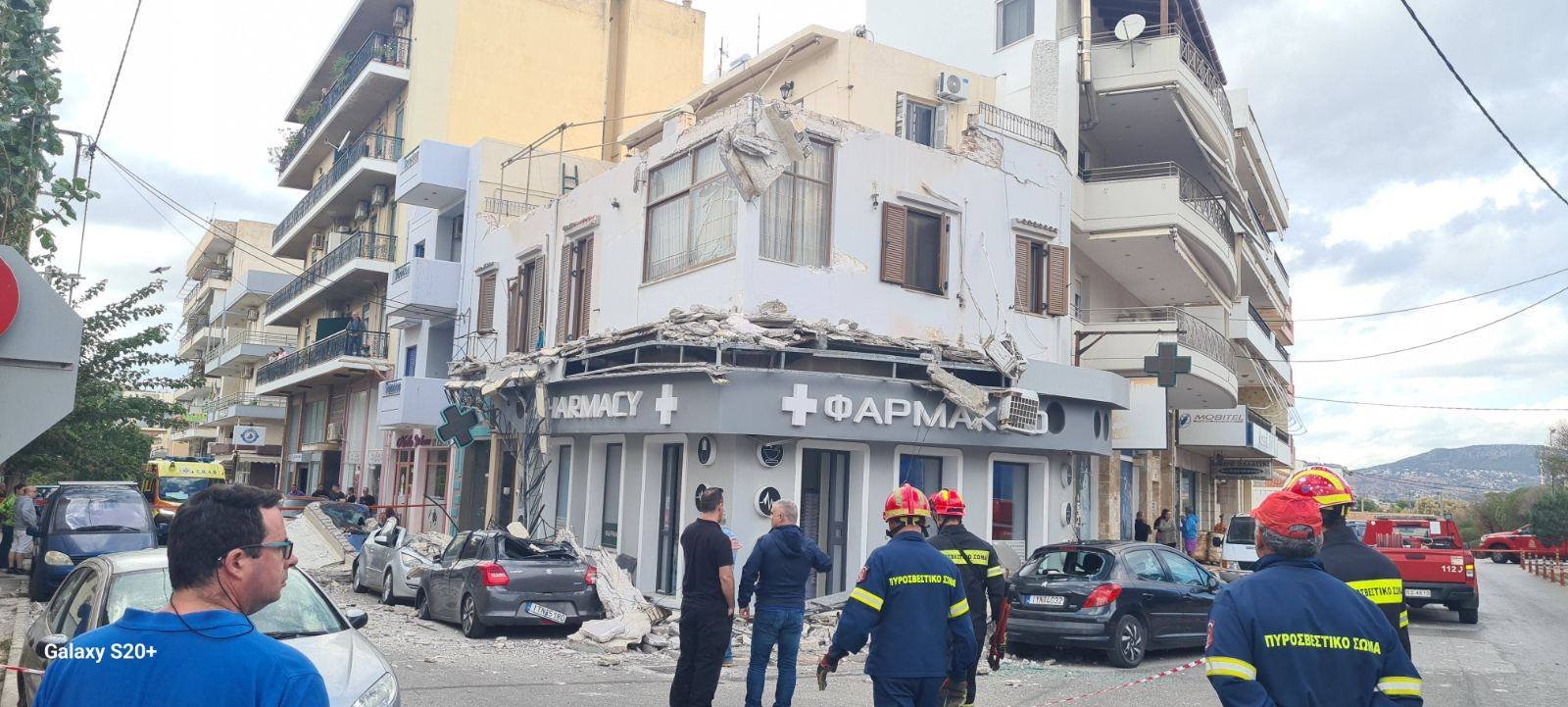 Από τα συντρίμμια του μπαλκονιού που κατέρρευσε, προκλήθηκαν σοβαρές ζημιές στα παρκαρισμένα αυτοκίνητα, ενώ να σημειωθεί ότι στον κάτω όροφο βρίσκεται φαρμακείο.