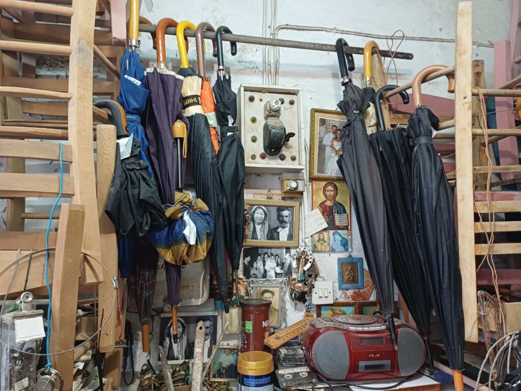 Το εργαστήριό του, μικρό και γεμάτο εργαλεία που έχουν ιστορία μεγαλύτερη από τη δική του, μοιάζει με υπαίθριο μουσείο. Κάθε γωνιά κρύβει κι ένα μυστικό της τέχνης: