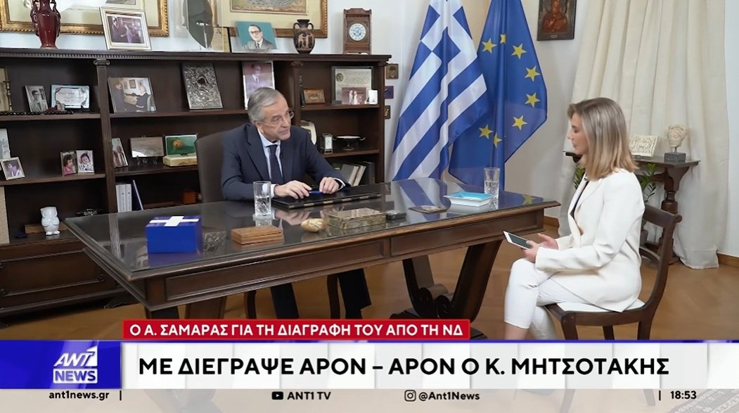 Ο Αντώνης Σαμαράς είναι ιδιαίτερα αιχμηρός για τον Κυριάκο Μητσοτάκη, όταν ερωτάται για τη διαγραφή του από τη Νέα Δημοκρατία, αναφέροντας χαρακτηριστικά: «Ο Μητσοτάκης με διέγραψε άρον άρον».