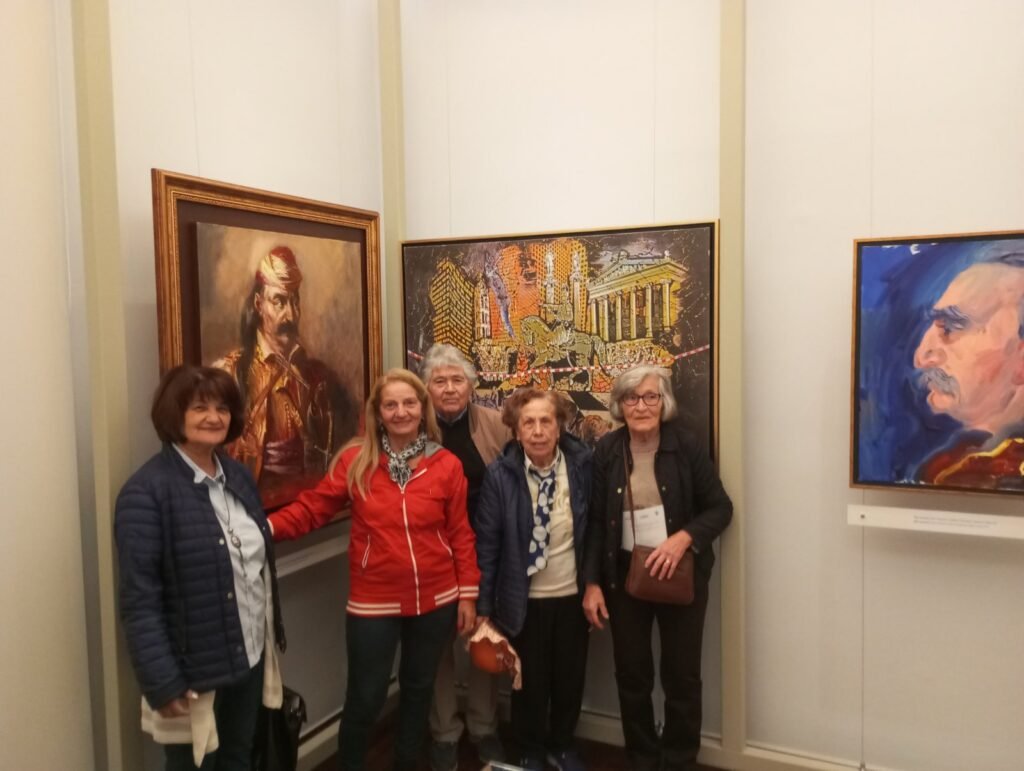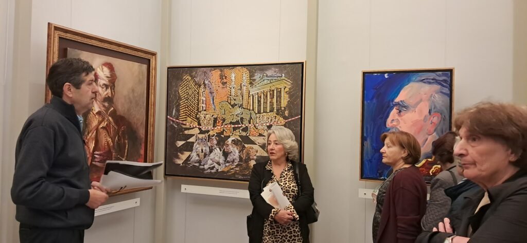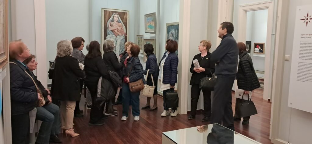 Ο κ. Σαραντάκης Πέτρος γνωρίζοντας σε βάθος το θέμα της έκθεσης ,υποδέχθηκε τα μέλη μεταδίδοντας τις γνώσεις του με τρόπο απλό,κατανοητό και κατάφερε να ζωντανέψει την εμπειρία για τουςεπισκέπτες και να τους βοηθήσει να συνδεθούν βαθύτερα με τα έργα.