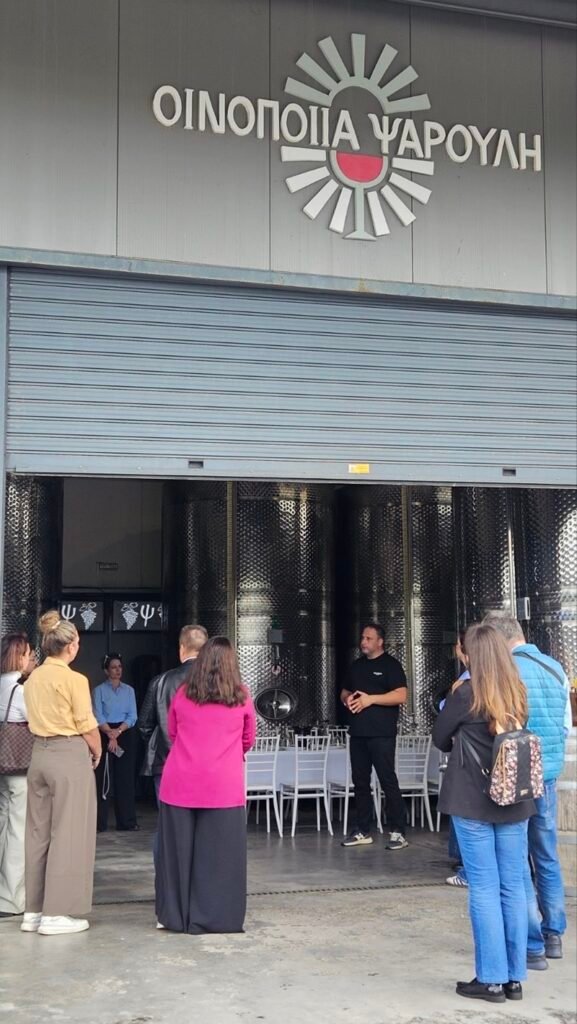 Οι συμμετέχοντες είχαν την ευκαιρία να ξεναγηθούν στις εγκαταστάσεις της Οινοποιίας Ψαρούλη, να γνωρίσουν τη διαδικασία παραγωγής και την ιστορία της Οινοποιίας Ψαρούλη , και να απολαύσουν μια καθοδηγούμενη γευσιγνωσία επιλεγμένων ετικετών. Η συνάντηση εξελίχθηκε σε έναν δημιουργικό διάλογο γύρω από την ανάπτυξη του οινοτουρισμού στη Μεσσηνία, τις συνέργειες με τον τουριστικό κλάδο και τις δυνατότητες που προσφέρει η περιοχή για εμπειρίες αυθεντικές, βιώσιμες και συνδεδεμένες με τον τόπο.